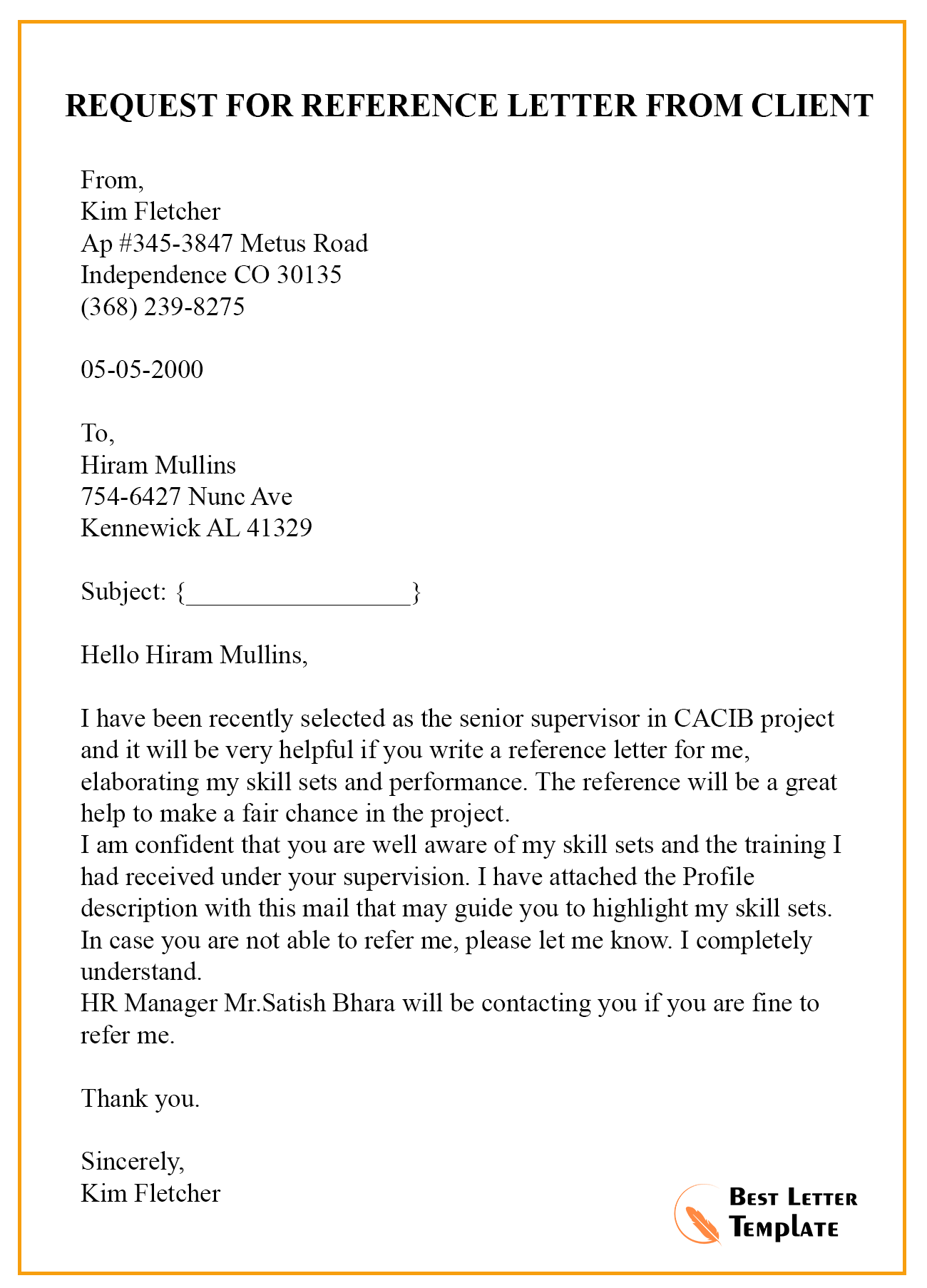 References Request Letter Example [Edit & Download]